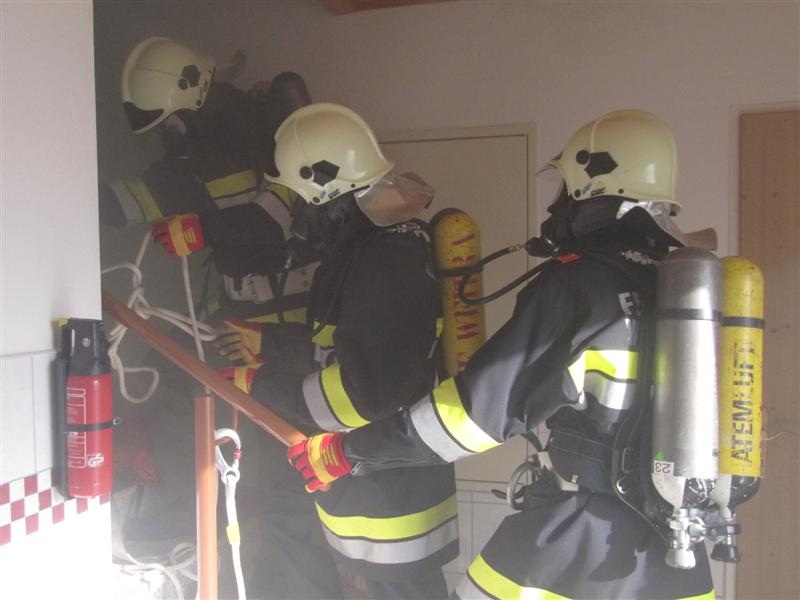 Übungsanahme war ein Brand im  Objekt, 2 Personen sind vermisst; im Zuge des Einsatzes bricht ein Atemschutzgeräteträger zusammen, und  muß durch einen weiteren Trupp gerettet werden.
